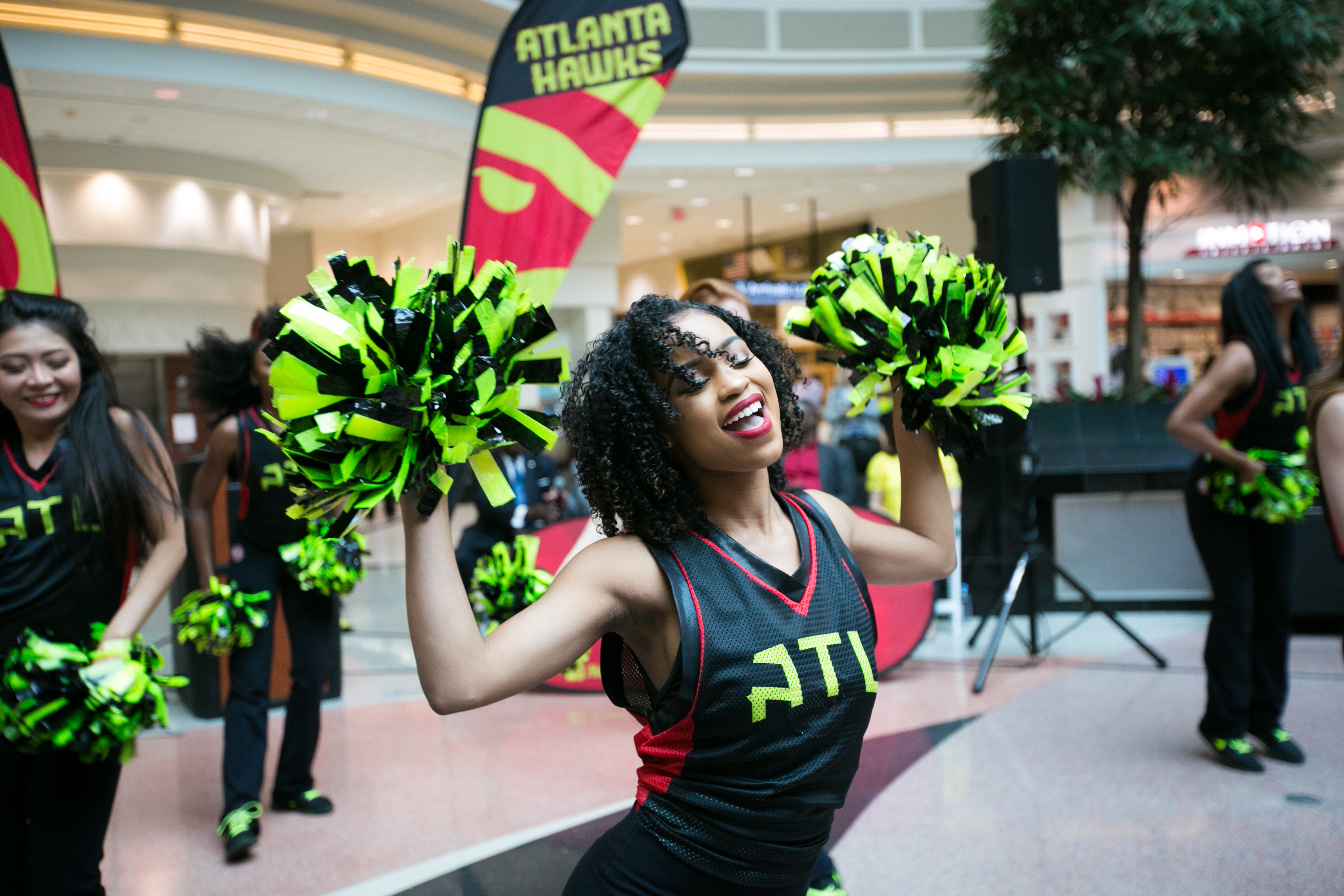 The Atlanta Hawks cheerleaders performed during the ceremony while team mascot Harry the Hawk teased fans and encouraged goofy photos.
