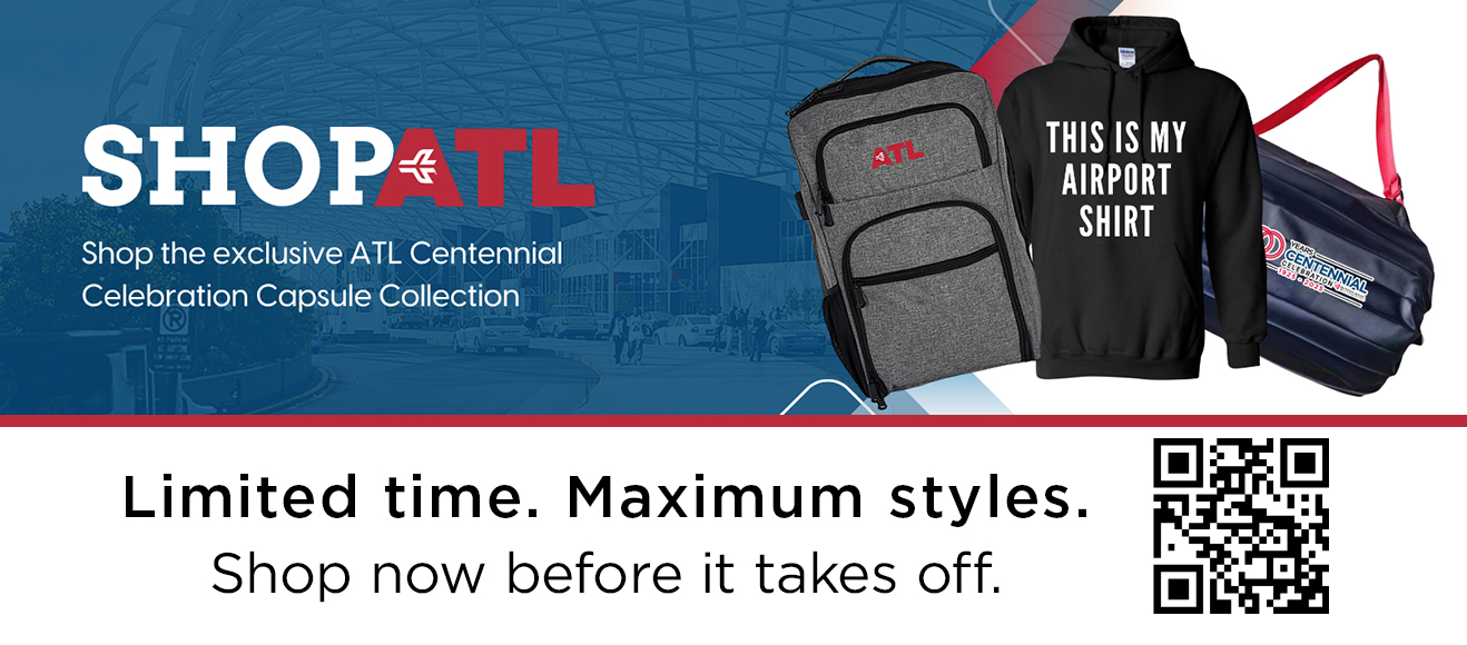 In addition to the iconic tee, the store also features limited-edition ATL100 merchandise designed to commemorate the world’s busiest and most efficient airport’s century of service and innovation.