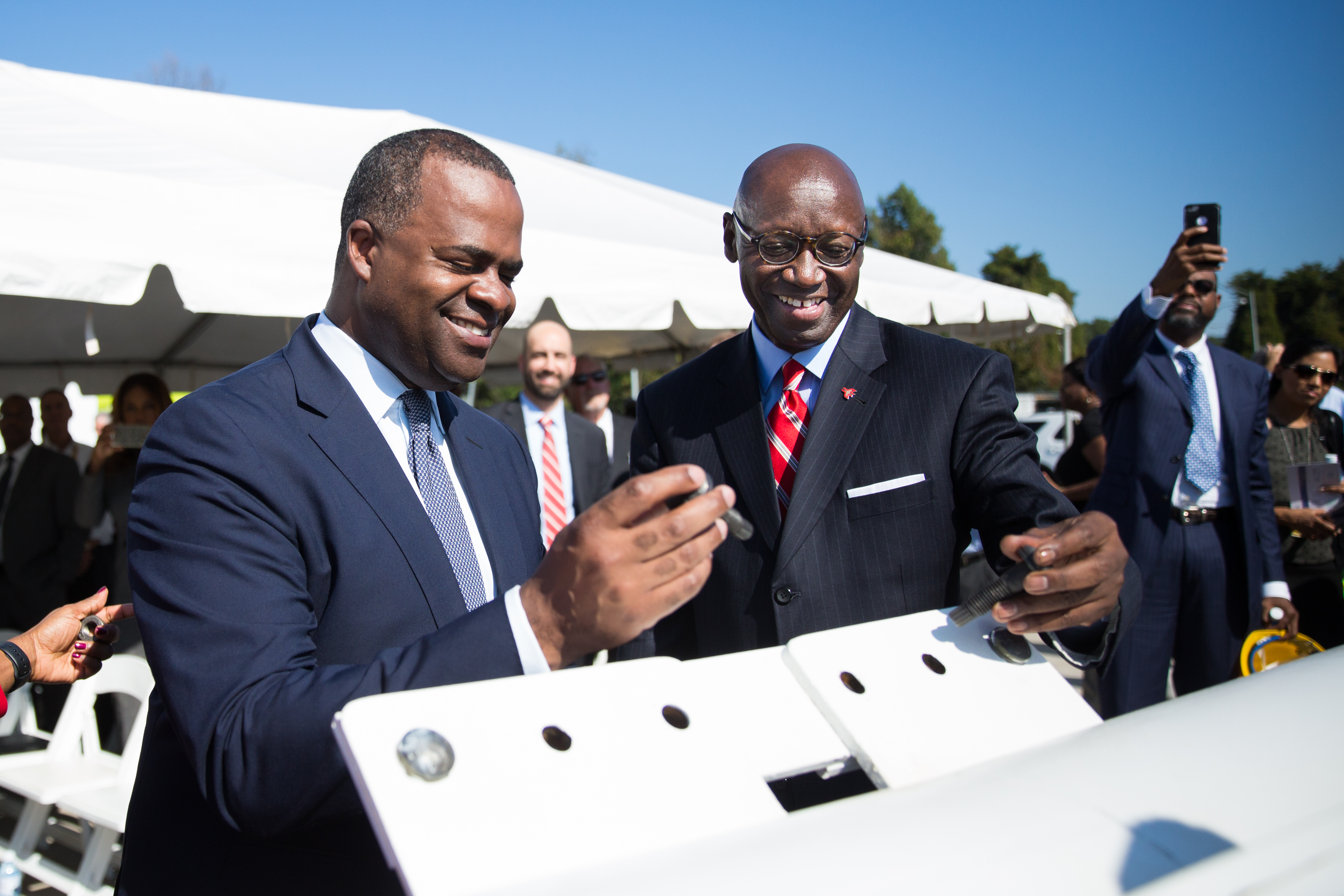 ATL dignitaries and partners assembled to celebrate the arrival of canopy steel Sept. 28. © 2017 Decisive Moment Events