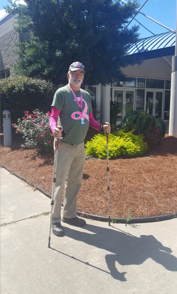 The 71-year-old is determined to participate in his fifth Georgia 2-Day Walk for Breast Cancer, despite rebounding from a recent hip replacement.