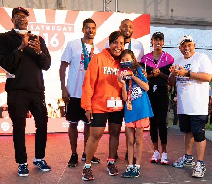 Airport General Manager Balram “B” Bheodari welcomed the crowd to see one of the flattest – and fastest – courses in metro Atlanta. Bottoms was joined by four Atlanta Olympic medalists – Christian Coleman, Dwight Phillips, Angelo Taylor, Edwin Moses and Terrence Trammell – serving as part of the Mayor’s “Heat.”