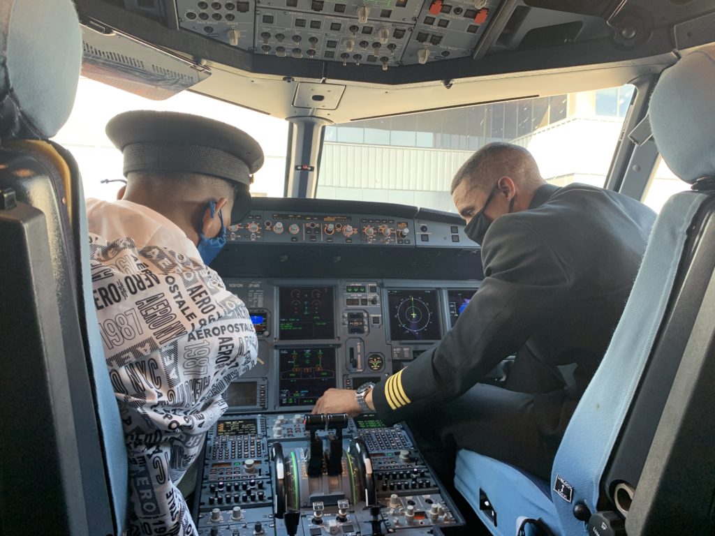 After, they walked up the stairs to enter the plane and as they reached the cockpit, you could immediately tell that this was the perfect ending to Zaron’s already perfect day. Captain Hodge spent extensive time talking with Zaron about the intricacies of flying as well as giving him some great advice to remember on his journey to becoming a successful pilot.