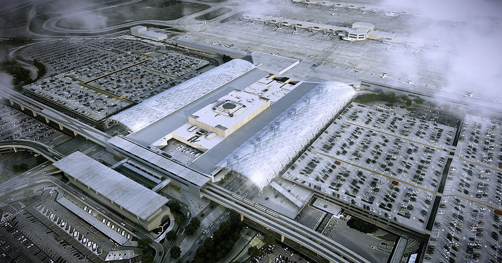 One of the signature projects will be the construction of two massive canopies covering the north and south entrances of the Domestic Terminal. The canopies, which will total the length of three football fields, will provide a dramatic entrance to the Airport while protecting guests from rain, wind and snow. The canopy project is scheduled to be completed as early as 2019, and the additional runway and concourse are expected to be operational by 2035.