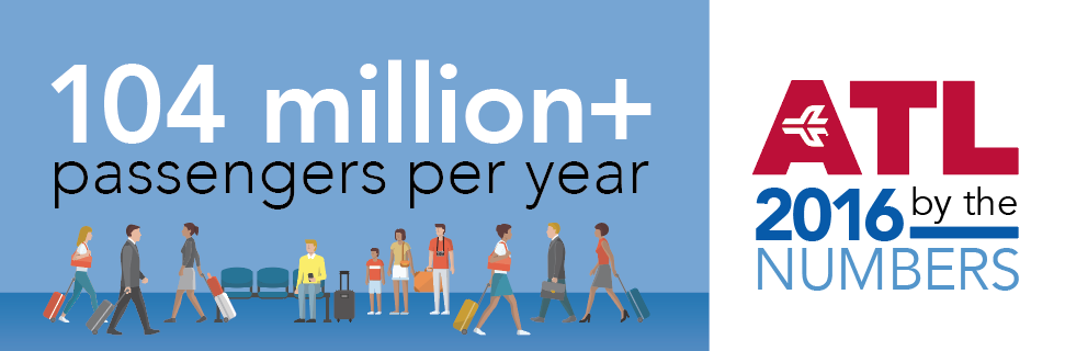 Hartsfield-Jackson served more than 104 million guests in 2016, earning us the distinction of world’s busiest airport for the 19th consecutive year. That followed a history-making 2015, when ATL became the first airport to host more than 100 million passengers in a single year.