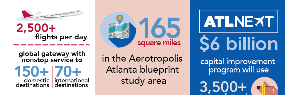 The Aerotropolis Atlanta blueprint, a first-of-its-kind strategy for the region, rolled out in 2016, with the goal of transforming and revitalizing the areas surrounding the Airport into a world-class business and residential community. This community will place a premium on safety, beautification, workforce development, green infrastructure initiatives and tourism.