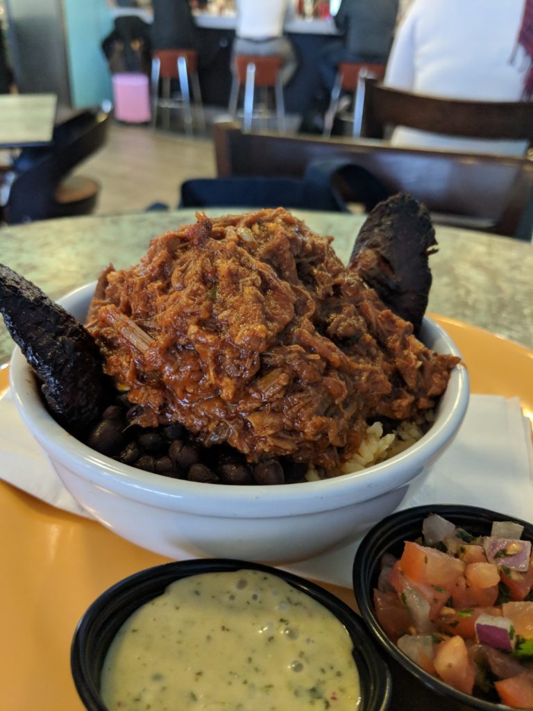 Beans have always been (no pun intended) a part of my diet, but I think the first time that I realized that I was a bean enthusiast was when I discovered Cuban style black beans. In Atlanta, one of my favorite places for Cuban food is Papi’s and the airport outpost doesn’t disappoint. There isn’t a better way to taste black beans than in their “Papi’s Bowl”. It has rice, black beans, plantains, pico de gallo, salsa verde and you can add ropa vieja or slow roasted pork if you’d like more protein. Bonus: In addition to the spacious dining area, they have a take out area that makes it easy to grab and catch your flight.