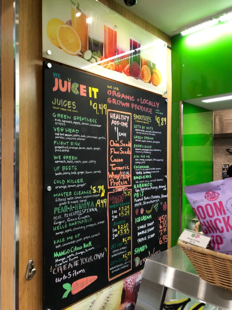 It’s not often you will find fresh juice at an airport, which is why We Juice it is a cool addition to the restaurants here. I love how they blend smoothies like the “Veg Head,” fresh juices like the “Flight Risk” and even juice shots like the “Jet Lag.” Now keep in mind, this location in the Domestic atrium is great when you’re coming off of a flight and need to get a boost before you head home. But if you’re getting ready to fly out, remember to finish your drink before you head through security. We wouldn’t want that freshness to go to waste!