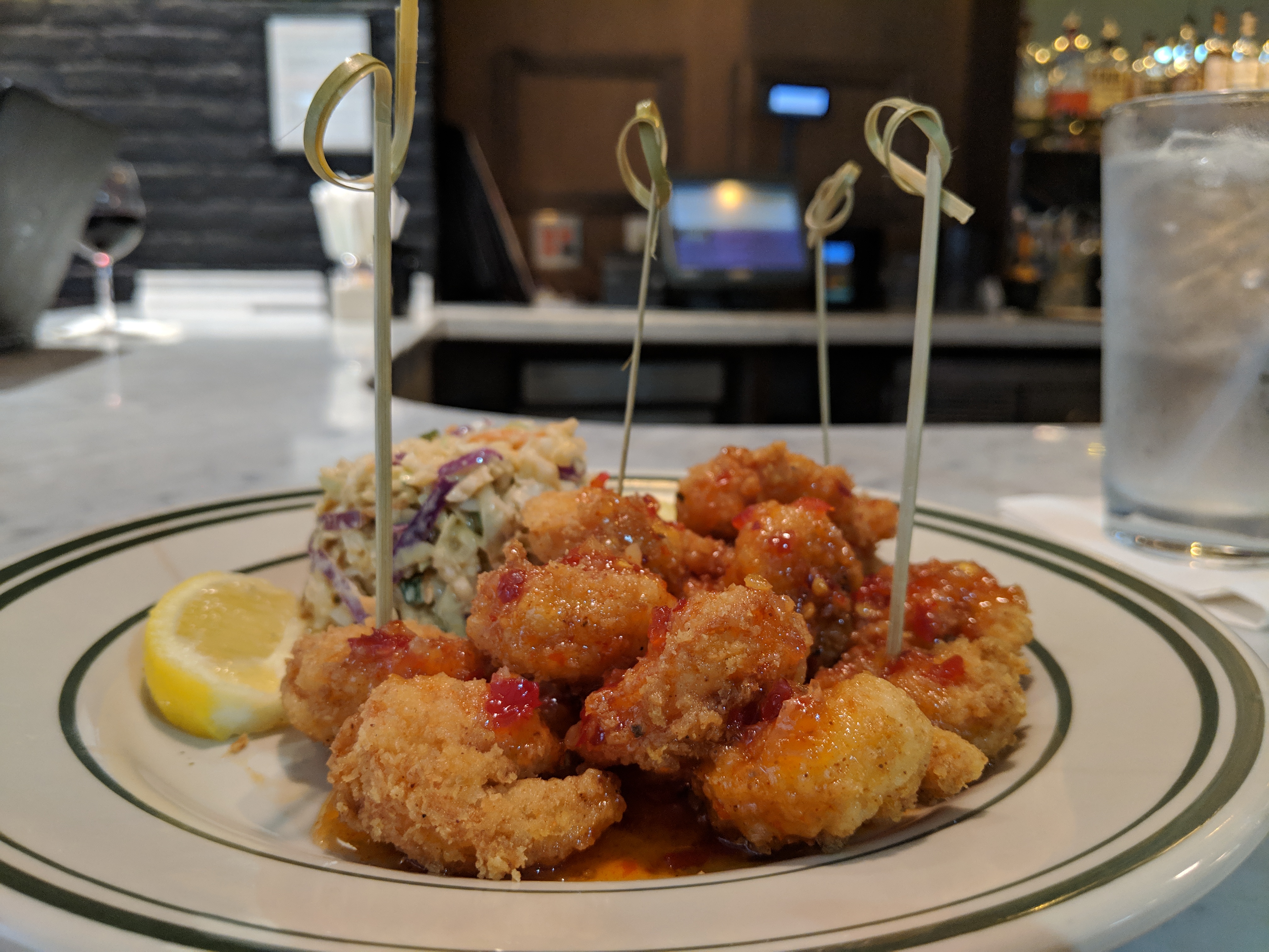 I’m always surprised how easy it is to forget that you’re in an airport while in ChopHouse. Maybe it’s because there are so many people taking advantage of the expansive bar to prop open their laptops to get some work done. Or maybe it’s the convivial nature of interactions as people use the fact that it’s before security to hang with friends before bidding farewell. The menu is filled with many choices, but the Firecracker Shrimp with Thai chili sauce is perfect for sharing and soaking up one of their brews. As a bonus, it’s served with coleslaw which has a pleasant hint of ginger.