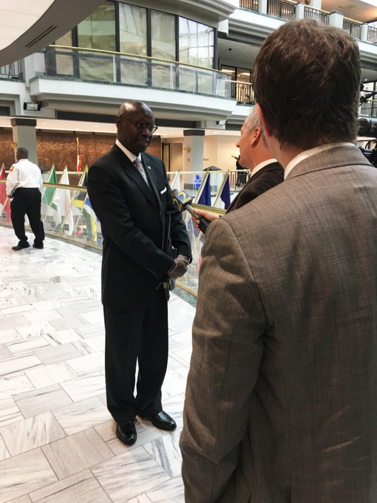 Newly appointed General Manager Roosevelt Council, Jr. talks to a member of the media after his confirmation.