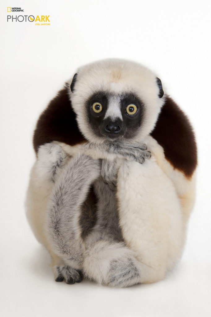 © Photo by Joel Sartore/National Geographic Photo Ark | A Coquerel’s sifaka, Propithecus coquereli, at the Houston Zoo.