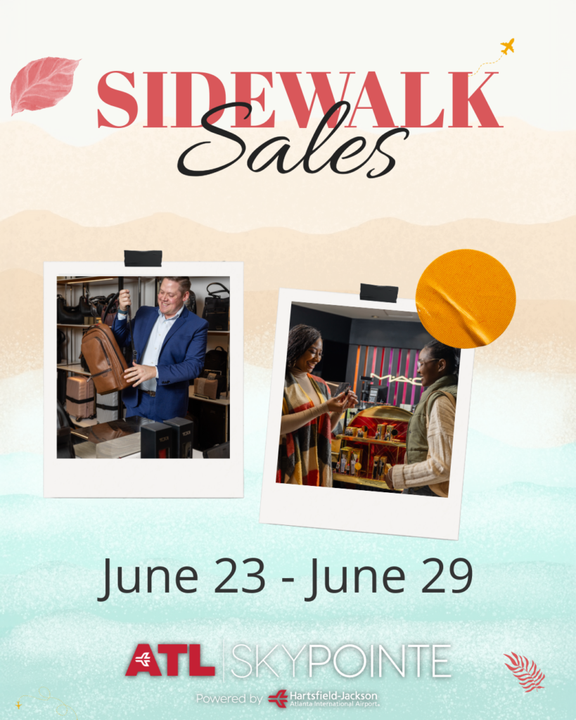 This summer, there’s something extra special in the air at Hartsfield-Jackson Atlanta International Airport and it’s not just the excitement of seeing the world. From June 23 through June 29, ATL is rolling out the red carpet for shoppers with the Skypointe Sidewalk Sale!