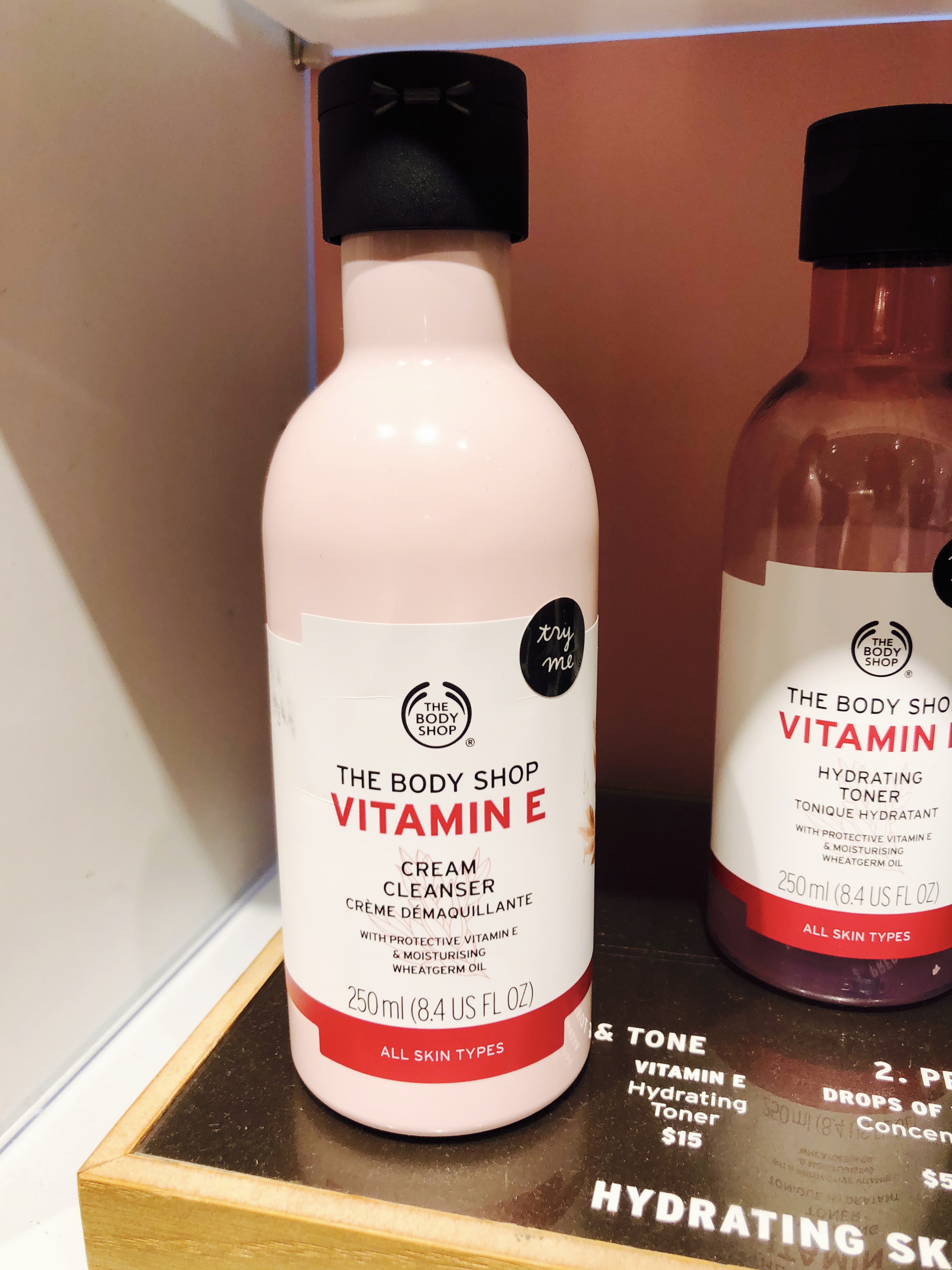 The Body Shop’s Vitamin E Cream Cleanser gently lifts dirt, makeup and impurities to leave skin feeling soft and smooth. This cleanser contains wheatgerm oil to hydrate & protect from moisture loss, making it especially effective for dry and dull skin.
