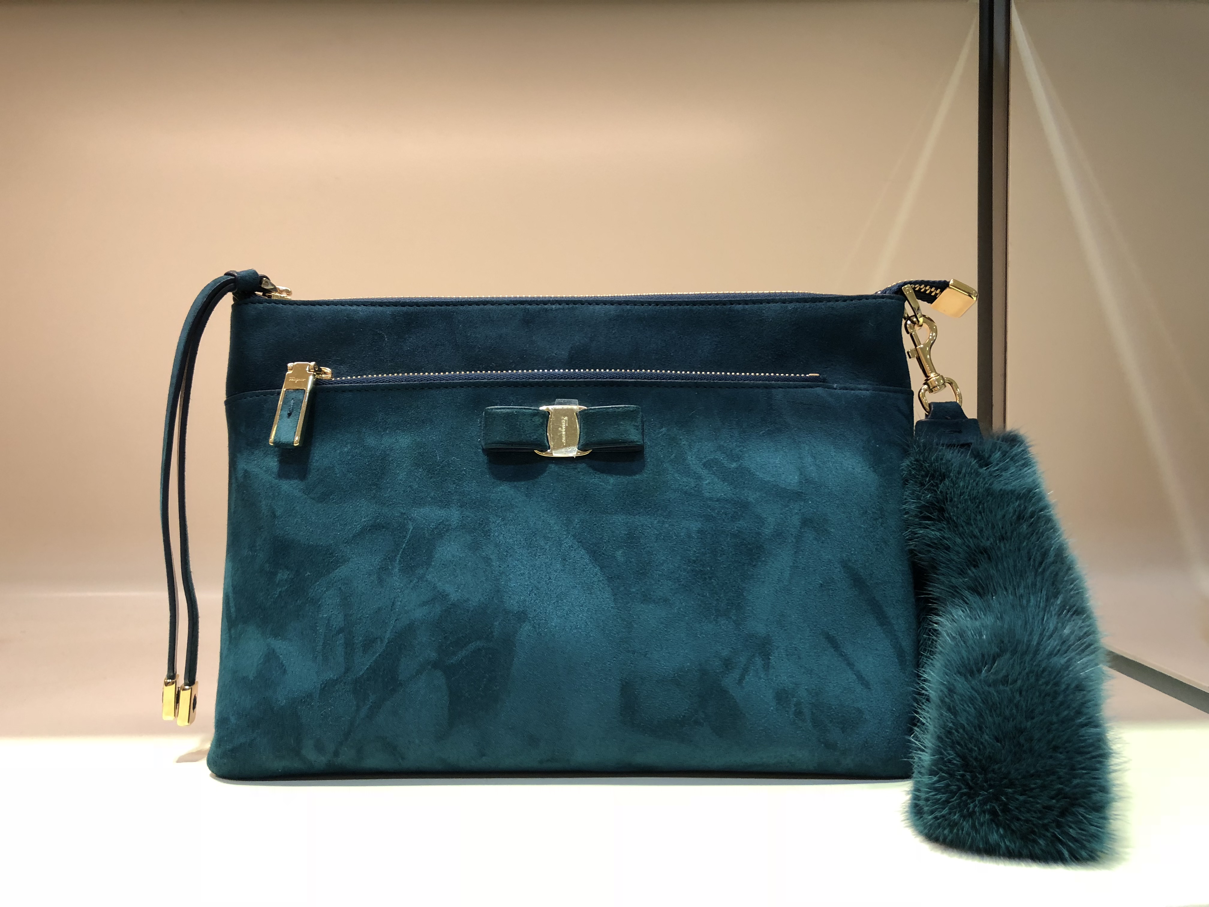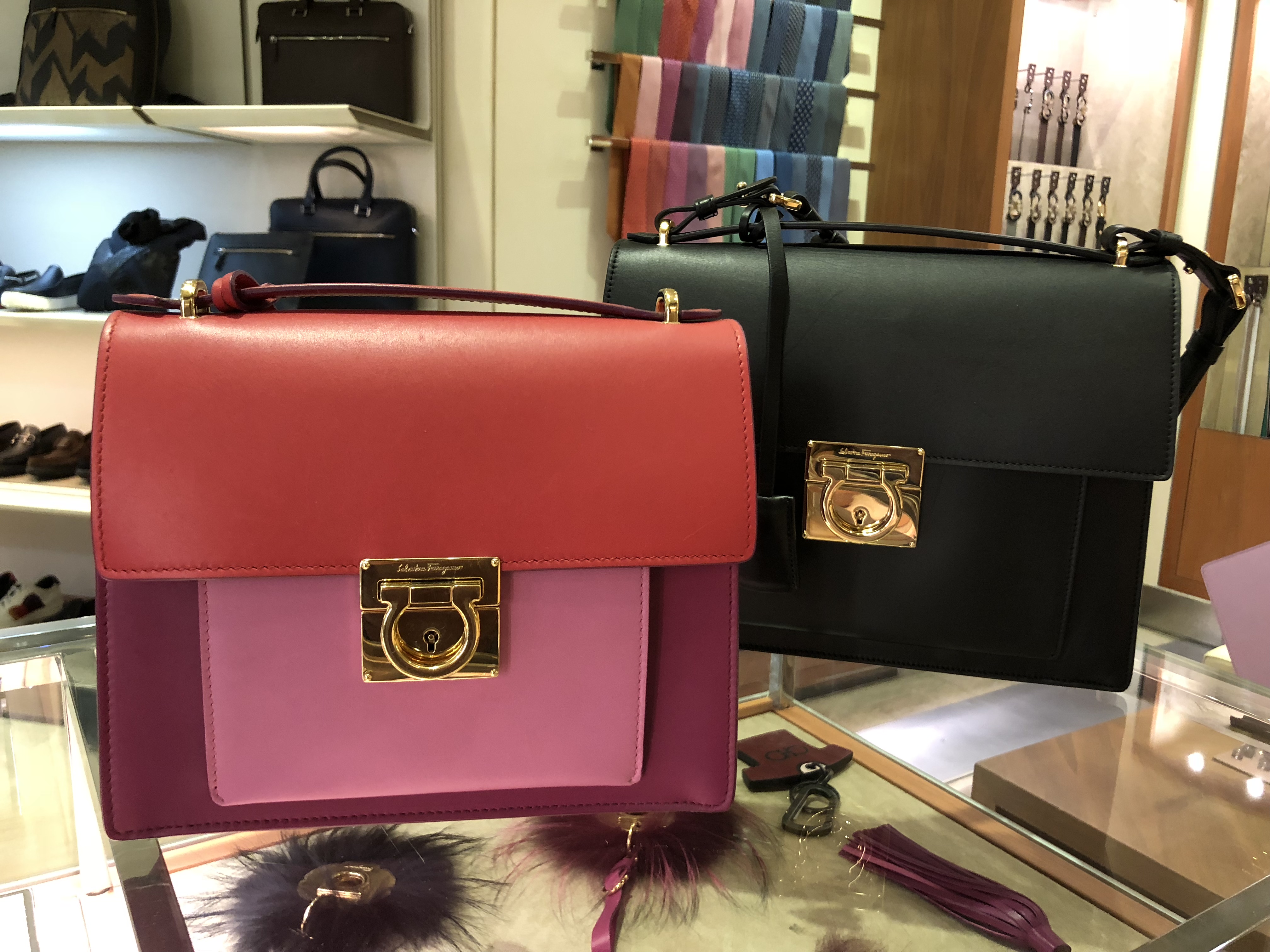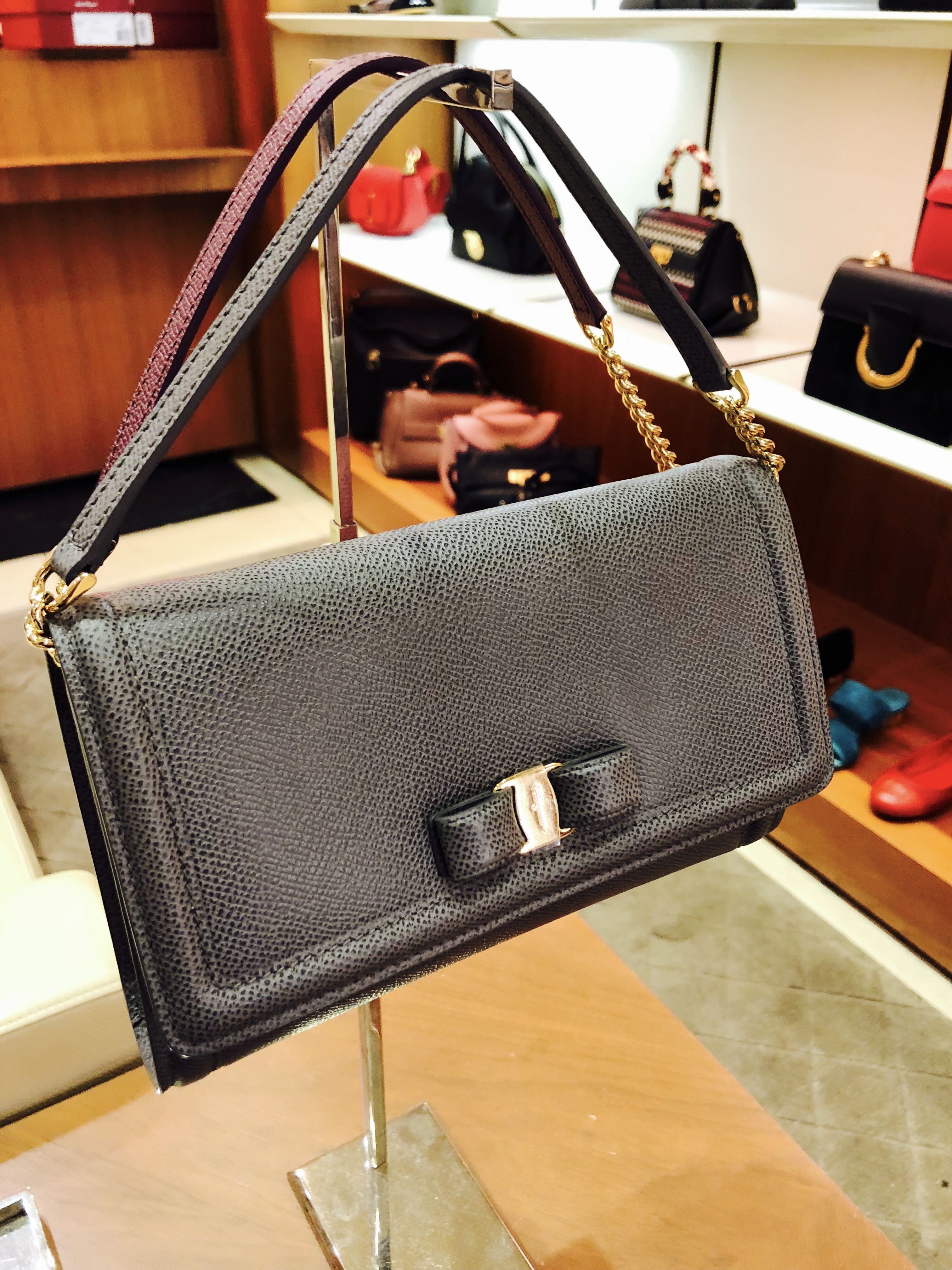 When you talk about luxury, you’re talking about Ferragamo. Hard to believe you can stroll into a Ferragamo store right here in ATL. I tried my best to keep my composure while looking around, but I have to admit when I took a look at their velvet emerald green bag with the fur wrist strap … I let out a gasp. Can you say GORGEOUS?! Of course, everything in the store is beautiful, including this colorblock top-handle satchel and chic little clutch with simple bow detail. If you are in the mood to splurge, this is the perfect place to stop before or after your flight.