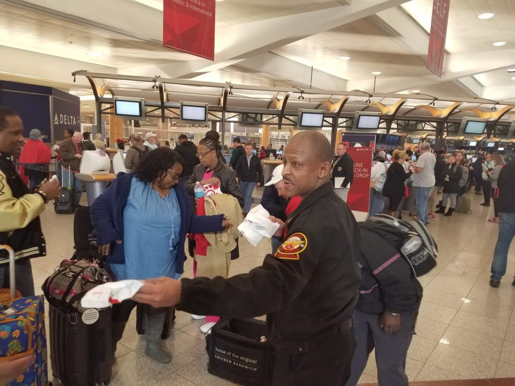 Working with hundreds of Airport and partner employees, we were able to distribute food, water and comfort items to passengers across the Airport campus. Thousands of meals were distributed from Chick-fil-A, McDonald’s and Wendy’s. TSA agents and other employees carried many disabled passengers up and down inoperable escalators.