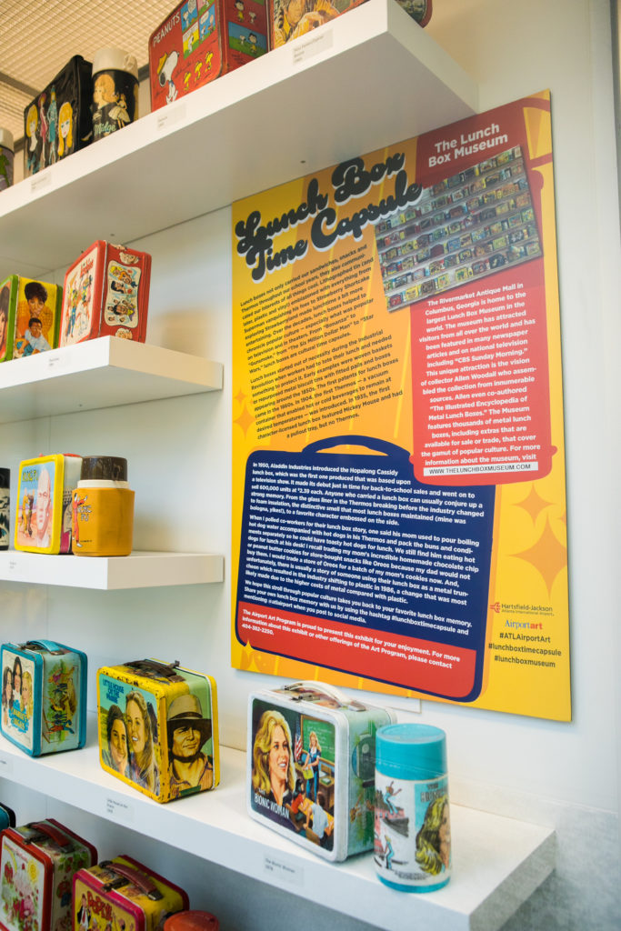 Now, over 30 years later, Woodall brought over 80 lunch boxes through the decades (from the 1920s to the 2000s) to the world’s busiest and most efficient airport. So, just in case you can’t make it to Columbus anytime soon, don’t worry. ATL’s award-winning Art Program has just what you need: the Lunch Box Time Capsule exhibit right on the boarding level of Concourse E (near Gate E14).