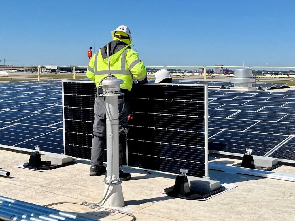 We are working to increase renewable energy use at the airport by installing solar panels on additional buildings. The Commercial Vehicle Hold Lot facility houses a 101-kWh array which was installed in 2017. Currently, we are working with Cherry Street to install additional solar panels. Solar panels were installed on Fire Station 40 in November 2024, and on Fire Station 33 in April 2025. Both arrays provide 40% of the needs of the Fire Stations.