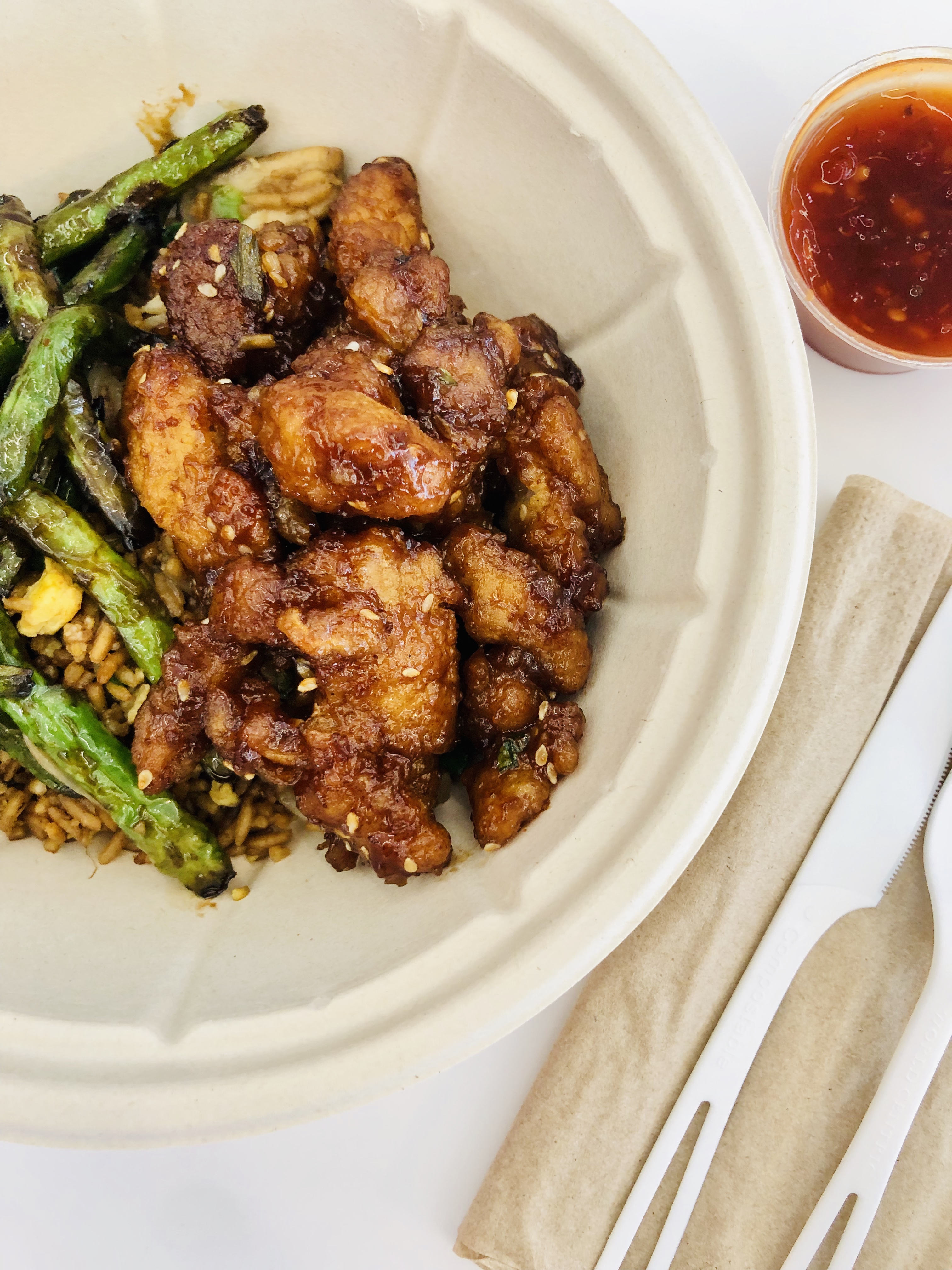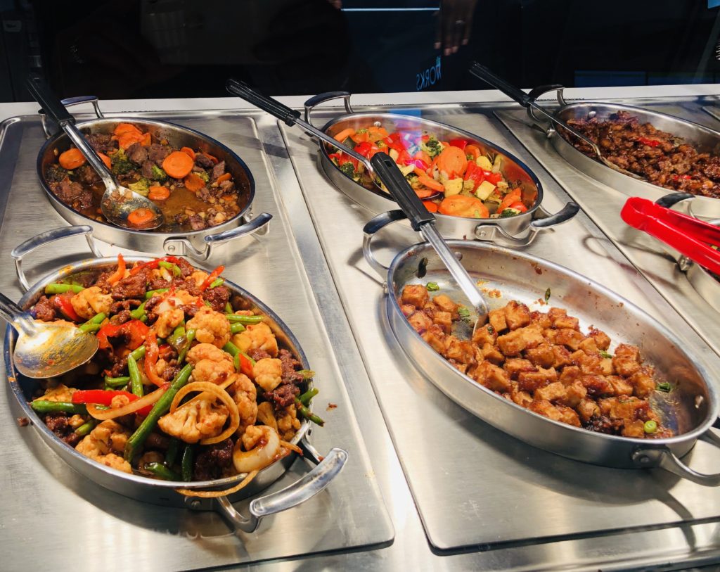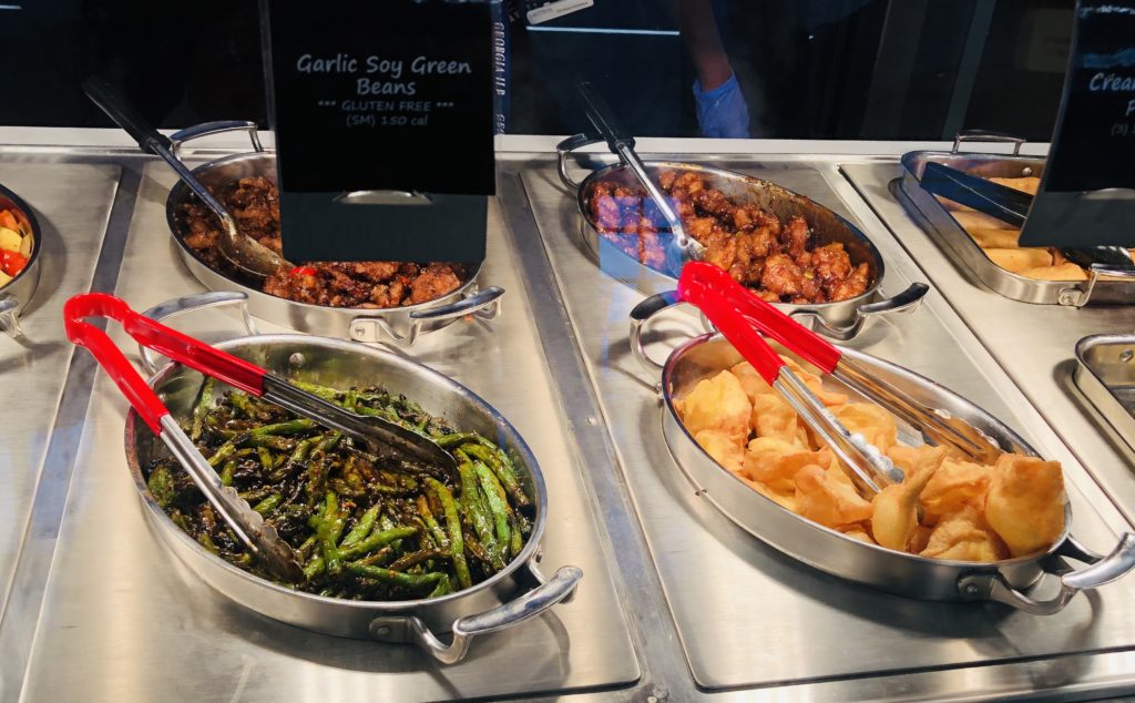After a few minutes of trying to decide what to eat (and talking myself down from ordering something from each place), I settled on some Asian cuisine from Leeann Chin. I chose Sesame chicken with fried rice and garlic soy glazed green beans. It was flavorful and delicious! I added some of their signature chili sauce for a little heat.