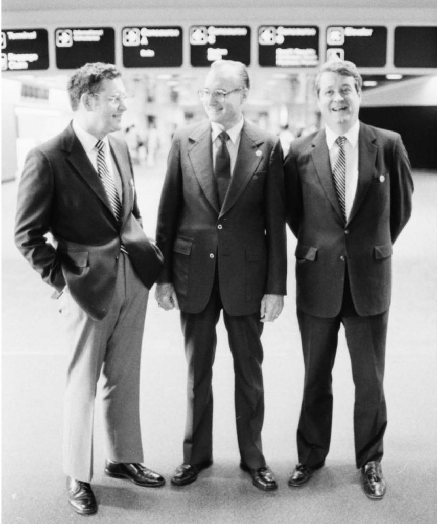 Max Walker, center, looks at former Aviation Commissioner George Berry in this undated photo. Courtesy of Hartsfield-Jackson Atlanta International Airport.